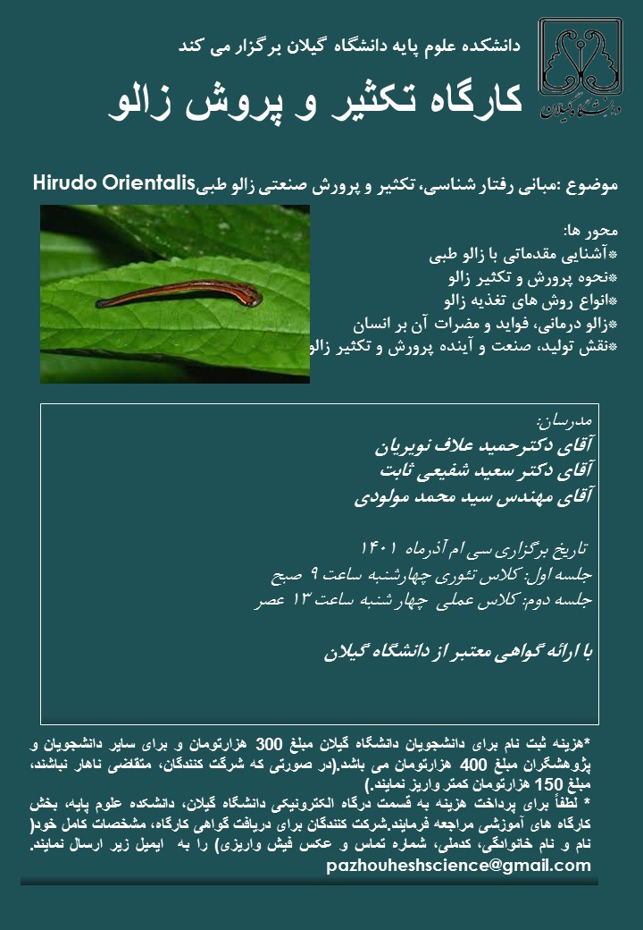 برگزاری کارگاه آموزشی حضوری: پرورش و تکثیر زالو طبی